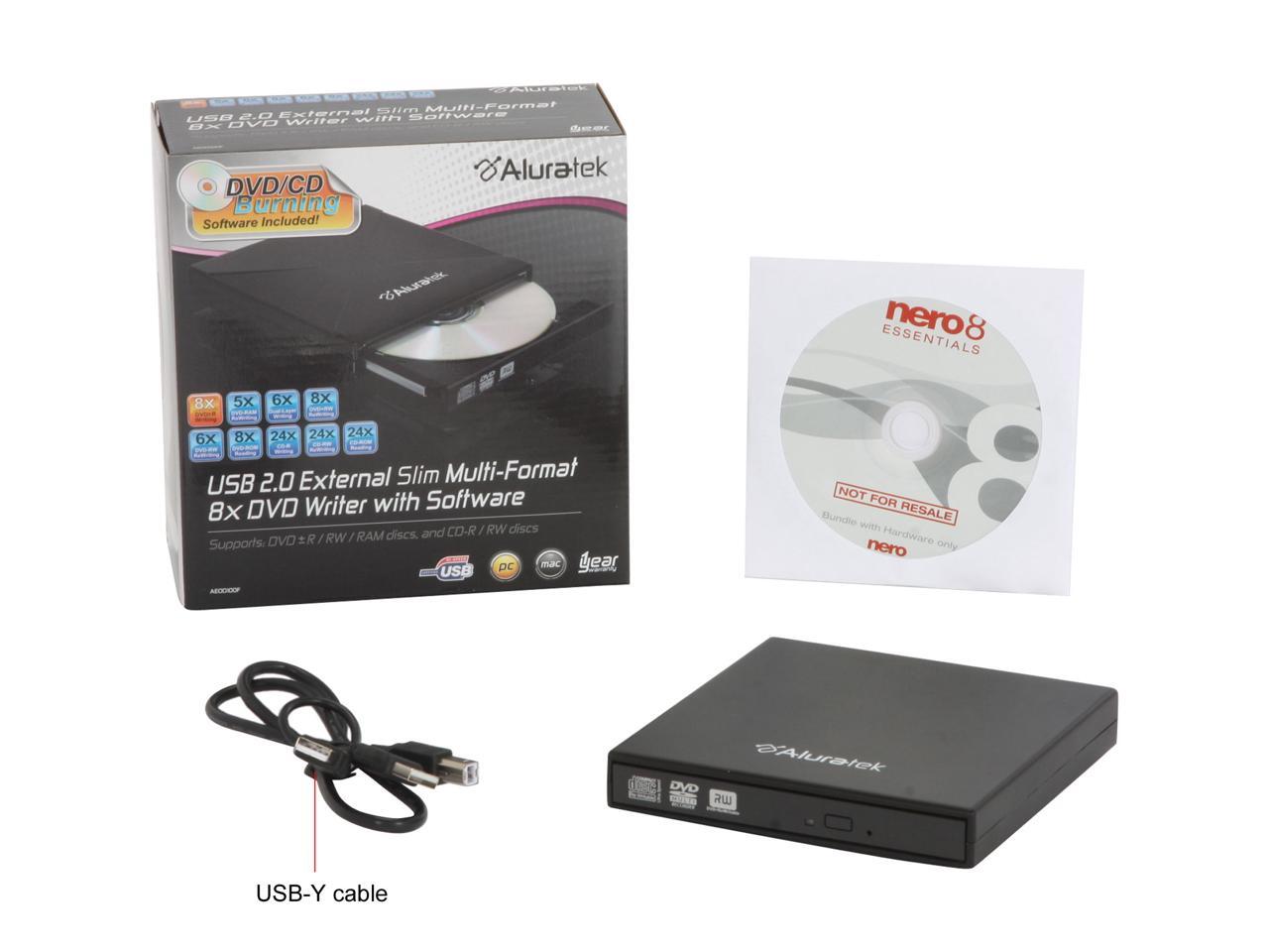 Aluratek USB 2.0 Black External Slim Multi-Format Writer with Software Model AEOD100F