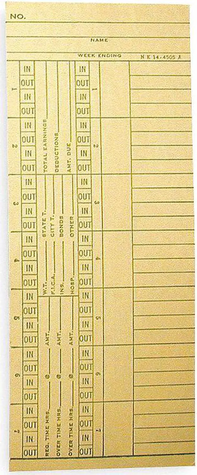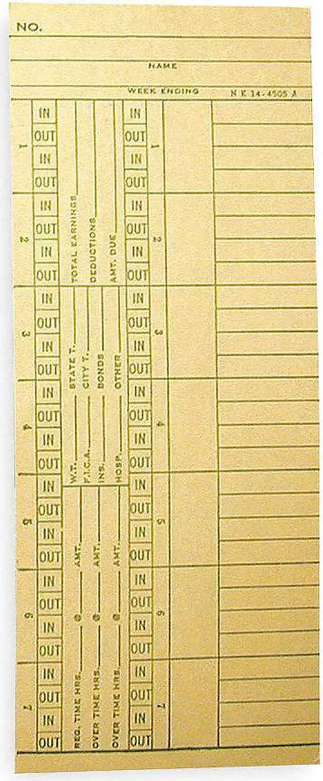 Time Card, Double Sided Payroll, Records Weekly, Number of Sides 2, Height 8 1/4 in, Width 3 3/8 in, For Use With Amano PIX-95, PIX-75, PIX-15, TCX-11, TCX-21, Package Quantity 1000. This item has been restricted from sale in the following state (s): []