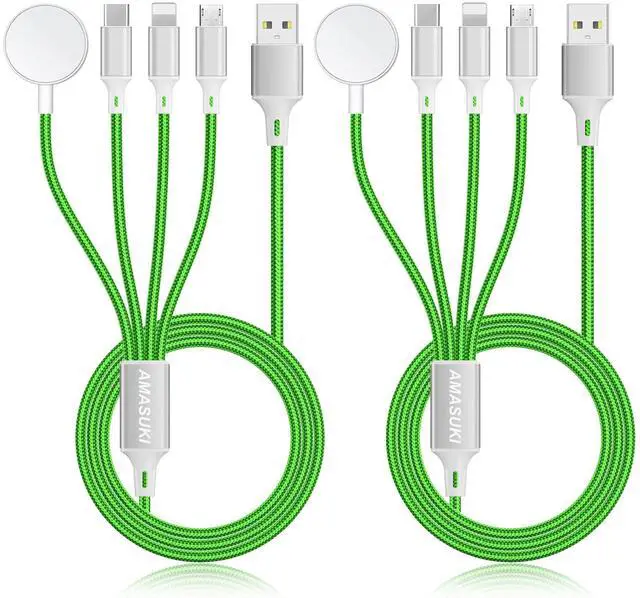The Ultimate Travel & Outdoor EssentialAmasuki 4 in 1 multi charger including USB C/Lighting/Micro/iWatch charging ports, keep your phone, tablet, earbuds and airplane gadgets powered on every road trip, cruise ship vacation, or camping adventure. This is the must-have cable for flying international, exploring Europe, hiking, or RV living