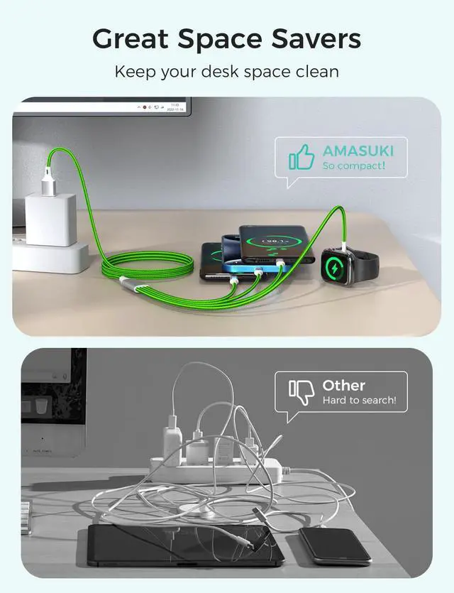 What You Get(1)We offer an industry-leading 36-Month Warrantyyour investment is protected for years (2)Amasuki 2Pack 4 in 1 Charging Cords (3)We strive to respond to all inquiries within 24 hours