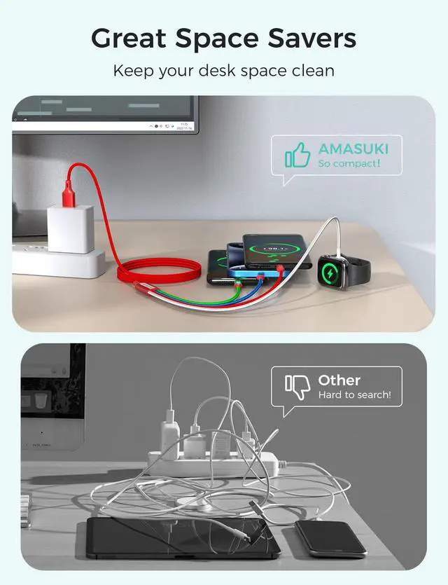 What You Get(1)We offer an industry-leading 36-Month Warrantyyour investment is protected for years (2)Amasuki 2Pack 4 in 1 Charging Cords (3)We strive to respond to all inquiries within 24 hours