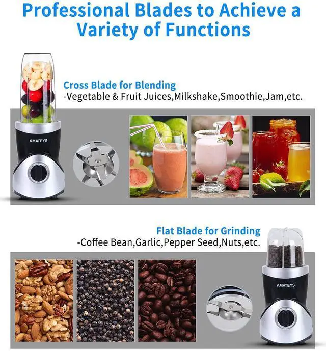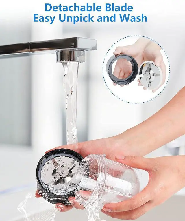- Multifunctional and portable. The combination of two blades can obtain the functions of blending and grinding at the same time. The cup can also be used for storage cup and portable cup.