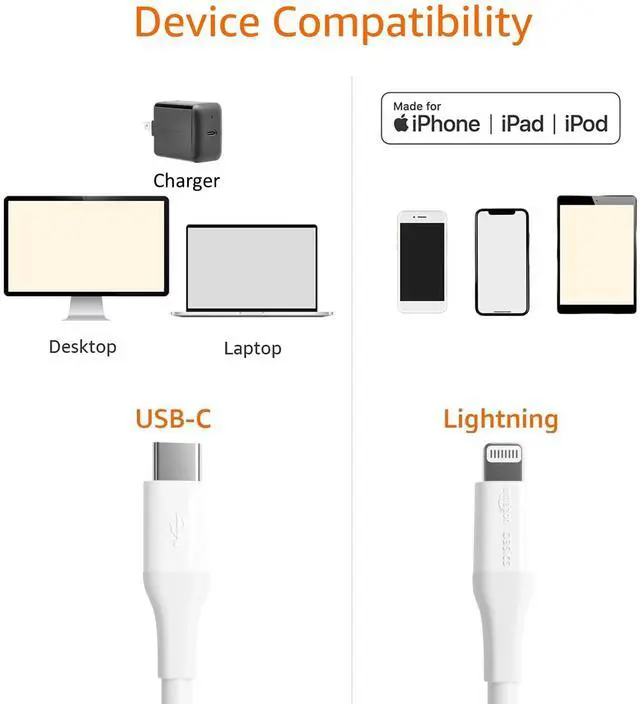 Ensures complete compatibility with iPhone14/13/12/11/X/XR/XS/8/7/6/6s/5s, iPhone Pro 14/13/12/11, iPhone Pro Max 14/13/12/11/XS, iPhone Plus 14/8/7/6/6s, iPhone SE /2nd Gen/3rd Gen, iPhone mini 13/12, iPad Pro 10.5 in/12.9(1st/2nd Gen) in/9.7 in, iPad Air 3/2/1, iPad mini 5/4/3/2/1, iPad 9th Gen and older, iPod Touch 7th Gen and older, AirPods Max, AirPods Pro, AirPods Series, iPod nano 7th Gen and Beats Pill+