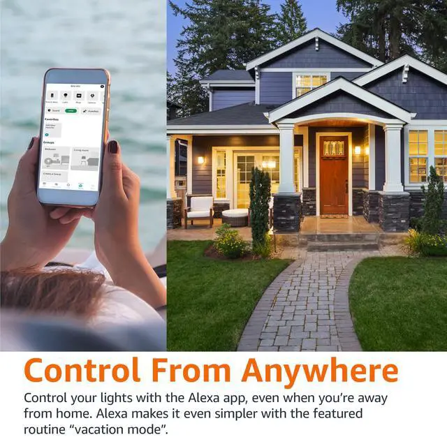 CONTROL FROM ANYWHERE: Control your smart lights with Alexa app even when you are not at home e.g. from your car, office, gym. Feel secure by making your house look occupied even when you are away by creating an Alexa routine to schedule lights to turn on and off automatically.