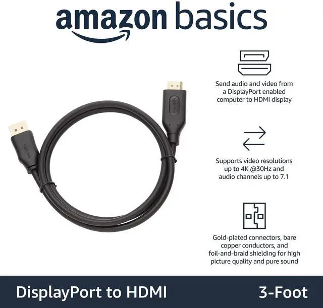 IN THE BOX: 3-foot DisplayPort to HDMI cable (5-pack)