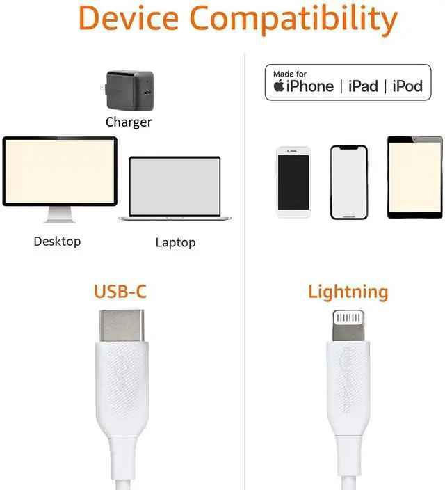 Basics USB-C to Lightning Cable Cord, MFi Certified Charger