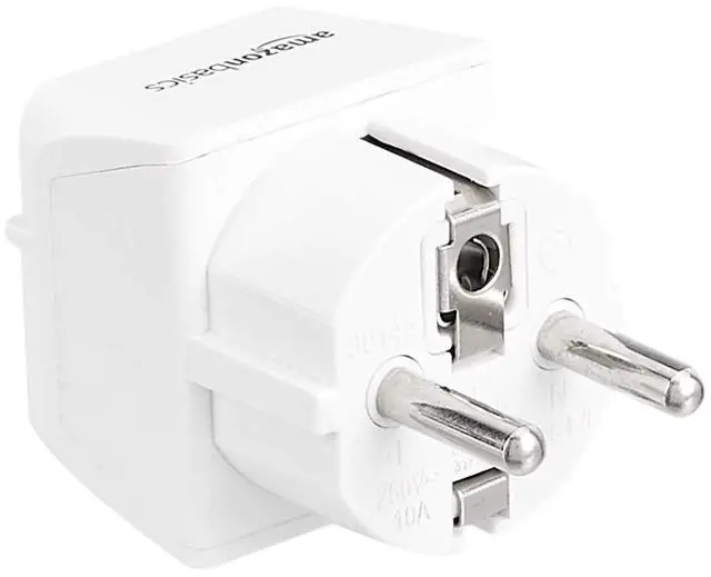 3-Pack Travel Plug Adapter Type E/F, US to Europe, Power Adapter for France, Germany, Greece, Hungary, Iceland, Netherlands, Norway, Poland, Portugal, Romania, Spain, White