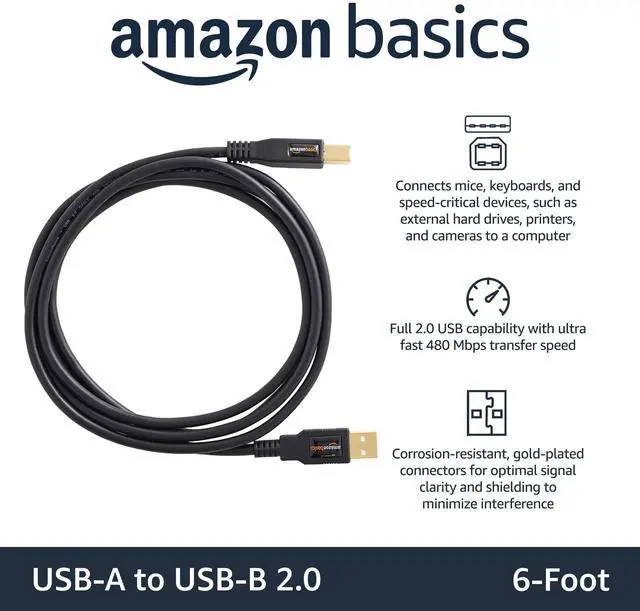 USB 2.0 Printer Cable - A-Male to B-Male, 6 Feet (1.8 Meters), 24-Pack