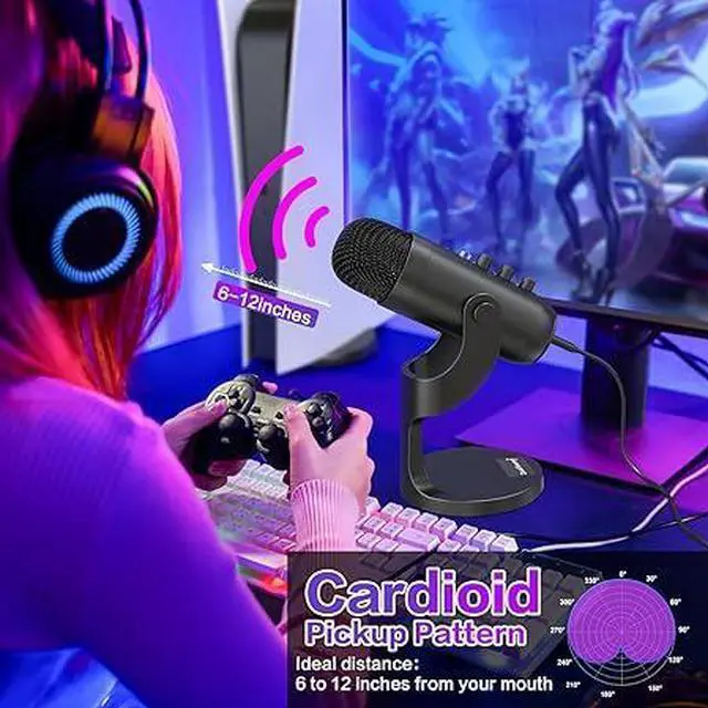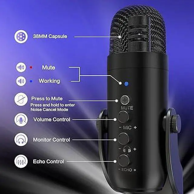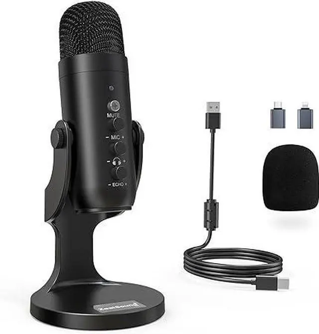 ZealSound Podcast Microphone for PC, Noise Cancellation USB Mic with Gain, Volume Adjustment & Mute Button, Monitoring & Echo, for YouTube, TikTok, Podcasting, Streaming, iPhone, iPad, Android, Mac