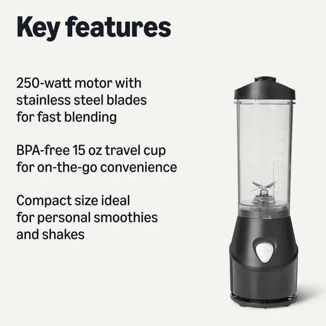 POWERFUL PERFORMANCE: 250 watts of power and durable stainless steel blades ensure fast, efficient blending for smooth results