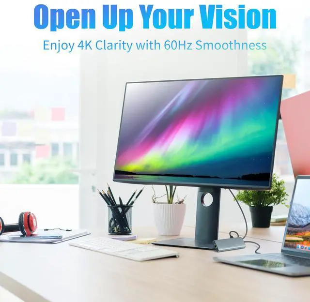 Ensure your laptop supports DP Alt Mode and 4K@60Hz. Some systems may not support advanced monitor features. Lower resolution/refresh rate if stability issues occur.