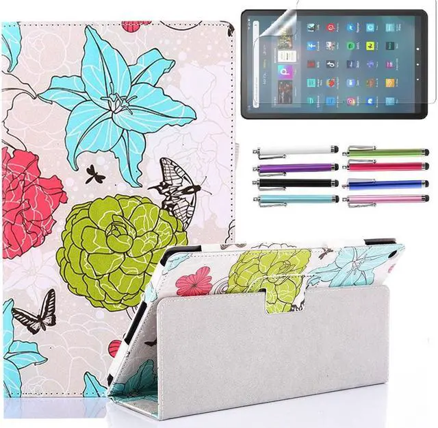 Case for Amazon Fire Max 11 (13th Generation, 2023 Released) - Slim Lightweight Folding Folio Stand Cover Auto Sleep/Wake PU Leather Case + 1 Screen Protector for Fire Max 11" and 1 Stylus (Flowers)