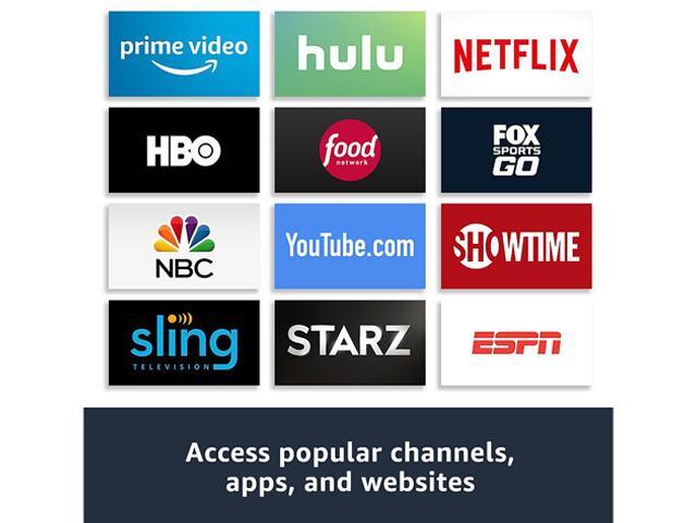 - Enjoy tens of thousands of channels, apps, and Alexa skills. Get over 500,000 movies and TV episodes from Netflix, Prime Video, Hulu, HBO, SHOWTIME, NBC, and more.