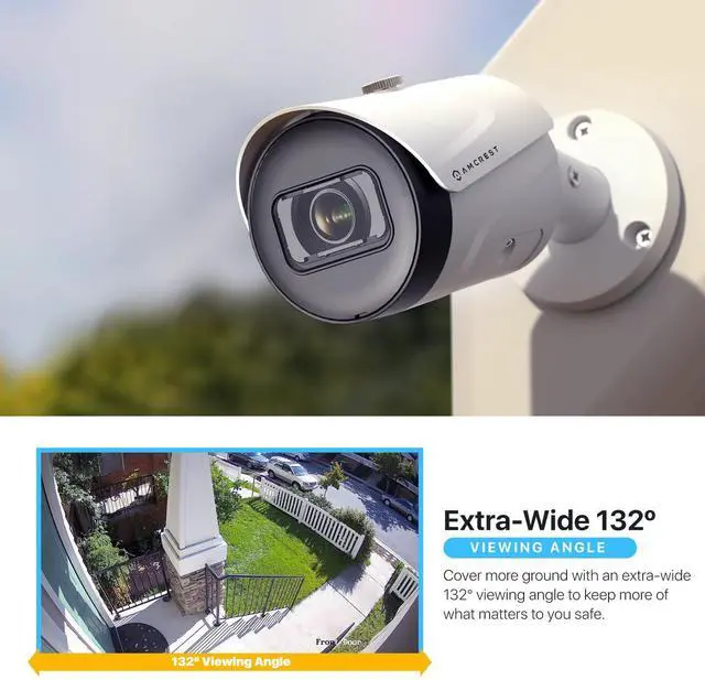 Experience magnificent 5MP UltraHD footage with the latest Starlight 1/2.7" CMOS image sensor and a 98.4° viewing angle. The Amcrest UltraHD camera soaks in the entire scene, dynamically painting all the vivid colors and rich imagery, pixel by pixel, onto your desktop or mobile device in 5MP UltraHD 2592x1944 resolution.
