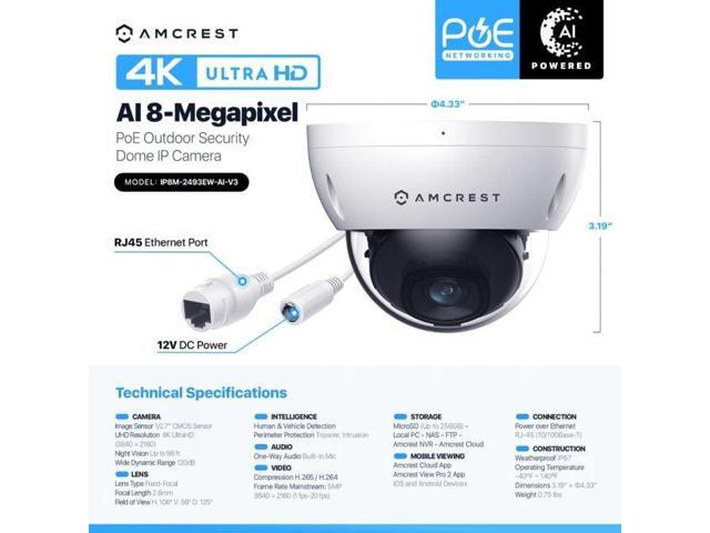 Amcrest 4K (8MP) AI Dome POE IP Security Camera IP8M-2493EW-AI-V3