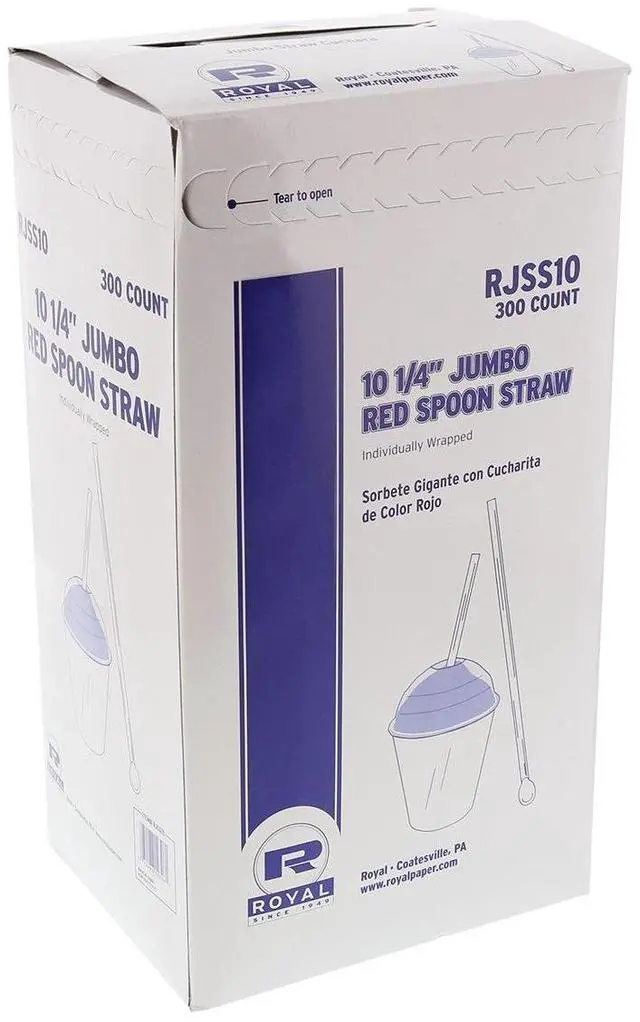 Jumbo Spoon Straw 10.25" Plastic Red 300/Pack 18 Packs/Carton RJSS10