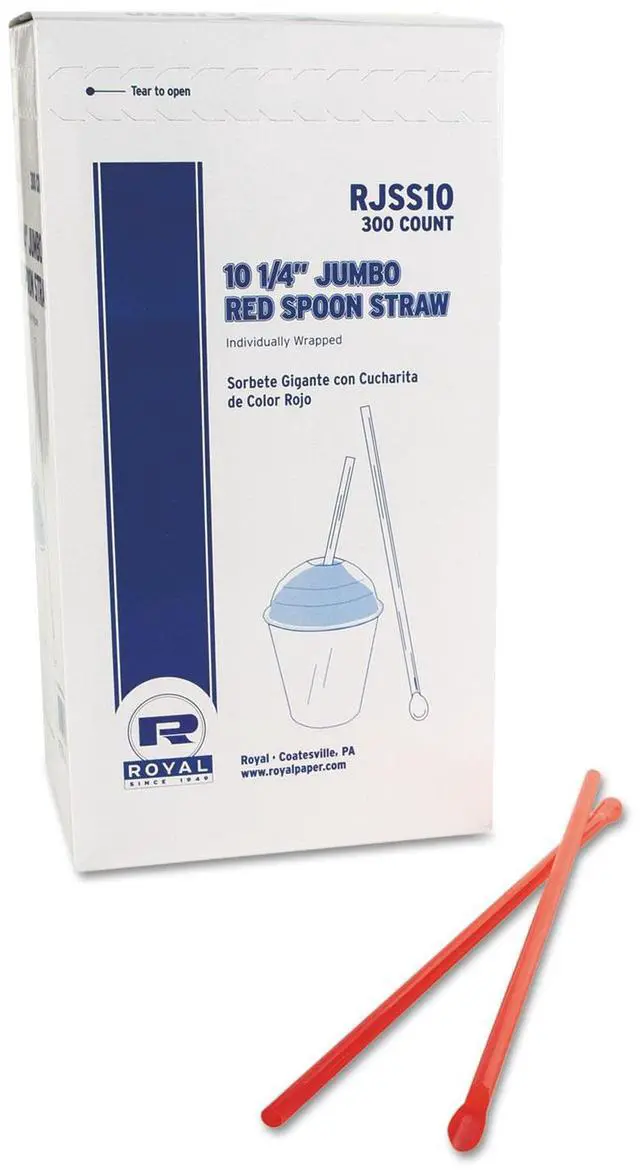 Jumbo Spoon Straw 10.25" Plastic Red 300/Pack 18 Packs/Carton RJSS10
