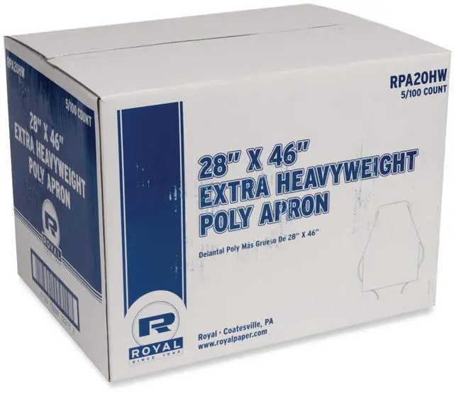Heavyweight Poly Aprons 28 x 46 1.77 mil One Size Fits Most White 500/Carton RPA20HW