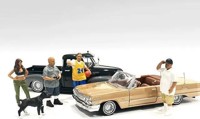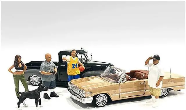 Brand new 1/18 scale of Lowriderz and a Dog 5 piece Figurine Set for 1/18 scale models by American Diorama.