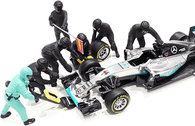 Brand new 1/43 scale models of Formula One F1 Pit Crew 7 Figurine Set Team Black for 1/43 scale models by American Diorama.
