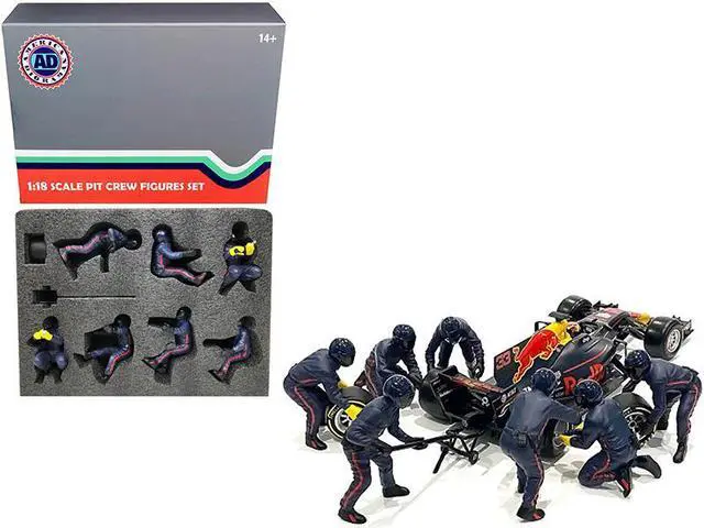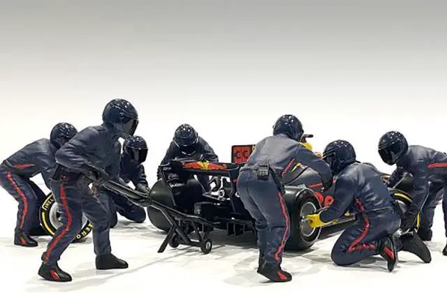 Brand new 1/18 scale models of Formula One F1 Pit Crew 7 Figurine Set Team Blue Release II for 1/18 scale models by American Diorama.