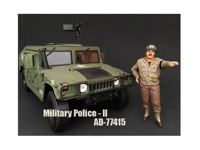 Brand New WWII Military Police Figure II For 1:18 Scale Models by American Diorama. Packed in a blister pack. Only one figure will be received. Each standing figure is approximately 4 inches tall.