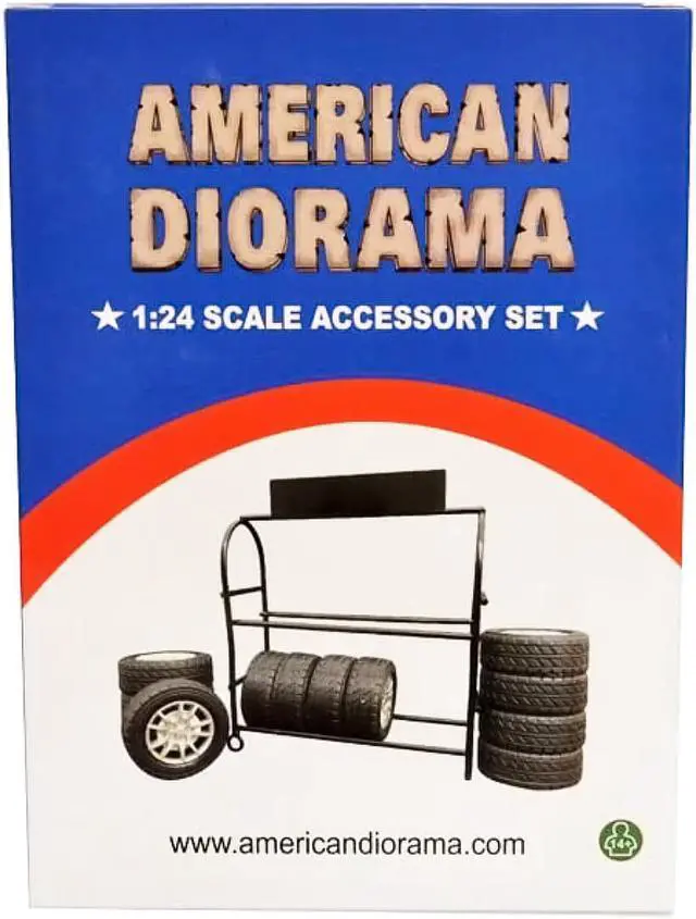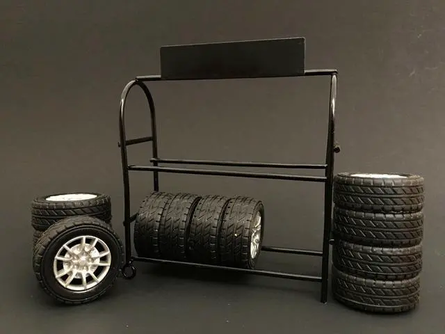 Brand new 1/24 scale model of Metal Tire Rack with Rims and Tires for 1/24 scale models by American Diorama.