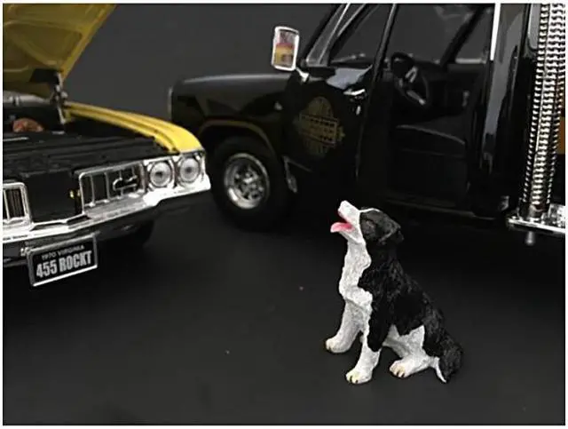Customer Patrick and a Dog Figurines / Figures For 1:18 Models by American Diorama. Comes in a blister pack. Only one figure and a dog will be received. Standing figure is approximately 4 inches tall. Does not come with the cars shown.
