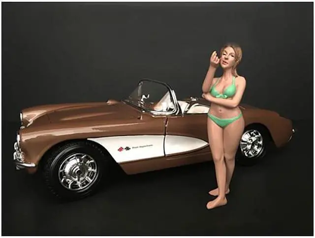 Brand new 1/24 scale of August Bikini Calendar Girl Figurine for 1/24 Scale Models by American Diorama. Comes in a blister pack. Does not come with the car shown. This figure is approximately 3 inches tall.