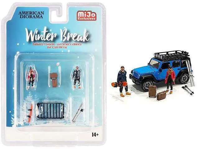 Brand new 1/64 scale diecast models of "Winter Break" Diecast Set of 6 pieces (2 Figurines and 4 Accessories) for 1/64 scale models by American Diorama.