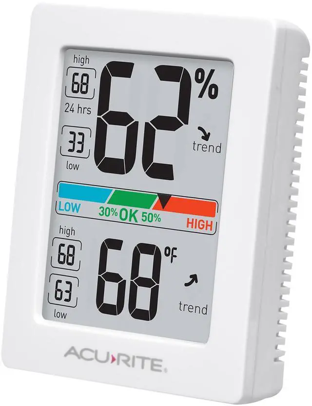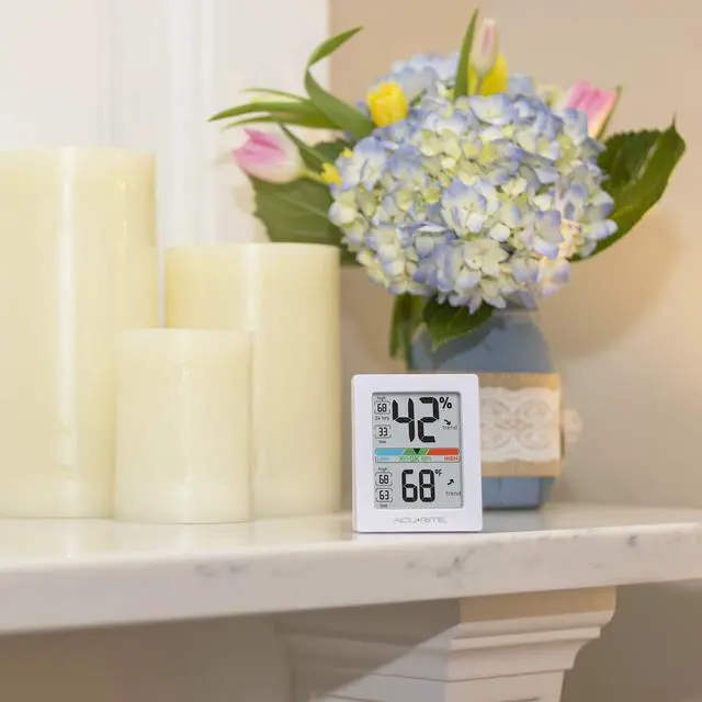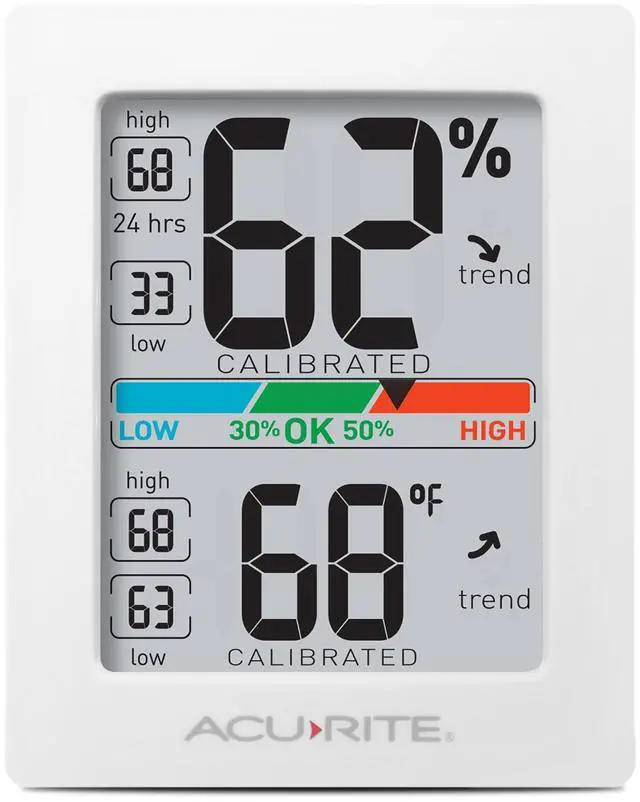 An all-in-one digital indoor thermometer and humidity gauge, the AcuRite Indoor Temperature and Humidity Monitor gives you a full picture of your indoor world. With an easy-to-read, at-a-glance display, you may access both humidity monitoring and accurate temperature as the need arises.