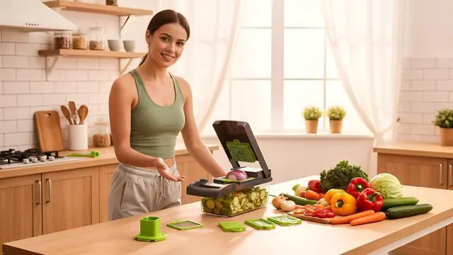 Introducing your kitchen accessories needs - our versatile and efficient Onion Chopper, a comprehensive chopper vegetable cutter that redefines convenience and precision in meal prep. Designed with interchangeable blades, this kitchen tools allow you to effortlessly switch between slicing onions, dicing cucumbers, and other veggies, making it an indispensable addition to any culinary space. This mandoline slicer for kitchen tasks extends beyond just slicing, can be used to slice eggs egg slicer for hard boiled eggs, carrot and a cabbage slicer cutter, ensuring you have the flexibility to handle a variety of foods with ease kitchen gadgets clearance. Our chopper isn't just a vegetable cutter; it's a complete Non-electric food processor, offering functionalities of a cheese grater, vegetable peeler, and even a fruit slicer suitable for peeling-style cuts. Whether you're preparing a healthy salad or slicing fruits for a fresh dessert, this kitchen gadget has you covered. The onion slicer feature ensures slices every time, while the vegetable dicer and mandoline slicer functionalities help you achieve consistent cuts, enhancing your food presentation and cooking efficiency. The included food chopper with container makes meal prep a breeze, allowing you to chop, slice, and store with minimal effort and mess. Those seeking kitchen gadgets, this tool combines the utility of a mandoline slicer, veggie chopper, and salad chopper tool into one compact device. Its ergonomic design promises ease of use, while the sharp blades precision cutting for everything from potatoes and carrots to strawberries and bananas. This hand-held food processor provides the versatility of a manual food chopper, ensuring you have control over the texture and size of your ingredients. The durable construction serves as a reliable onion holder for slicing, an efficient potato slicer for french fries, and a reliable cabbage shredder for quick, easy meal preparation. Everyday chefs and food enthusiasts alike, this onion chopper manual system is a must-have kitchen tool for any home. Invest in this comprehensive cooking solution today and revolutionize the way you handle vegetables, fruits, and more. From a mini chopper manual food processor to a reliable veggie slicer and chopper, our product is your efficient, precise, and enjoyable cooking experiences.