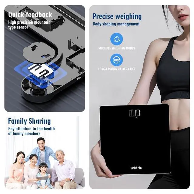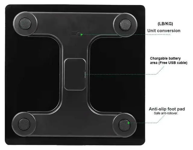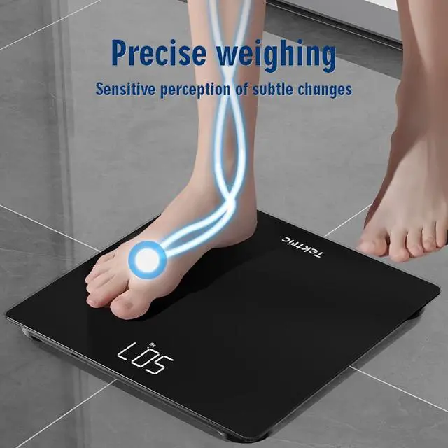 IMPORTANT SAFETY & USAGE NOTES - Tektric Digital Bathroom Scale 1. Switching Units: Easily toggle between kg and lb using the button on the back (top middle). 2. Best Surface for Accuracy: Always place the scale on a flat, hard surface. Avoid carpets, rugs, or uneven flooring to ensure precise weight readings. 3. Platform Safety: Inspect the tempered glass platform before each use. Discontinue use immediately if any cracks, chips, or damage are visible. 4. Handling & Cleaning: Do not drop, strike, or overload the scale. Clean only with a soft, damp clothavoid harsh chemicals or abrasive materials. 5. Step-On Technology: The scale automatically turns on when you step on and off when you step off, providing quick and accurate measurements every time. TRACK YOUR HEALTH WITH CONFIDENCE Start monitoring your weight and body metrics effortlessly with the Tektric Digital Bathroom Scale. Featuring: 1. Dual Units: LB and KG for versatile tracking. 2. High-Precision Sensors: Ensure accurate, stable weight readings. 3. USB Rechargeable Battery: Eco-friendly, long-lasting power - no disposable batteries needed. 4. Sleek Tempered Glass Design: Durable, modern, and easy to clean. 5. Step-On Technology: Instant auto-on for convenience. Take control of your health with Tektrics eco-friendly, rechargeable digital bathroom scale - where cutting-edge technology meets sustainability. CUSTOMER SUPPORT If you experience any issues, please contact us immediately through your Amazon account. We are committed to providing a 100% satisfaction guarantee and will assist you promptly to resolve any concerns.