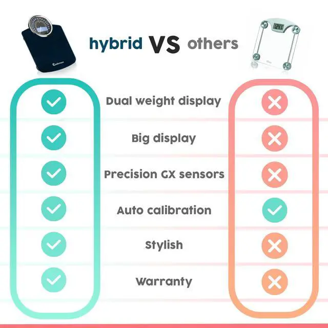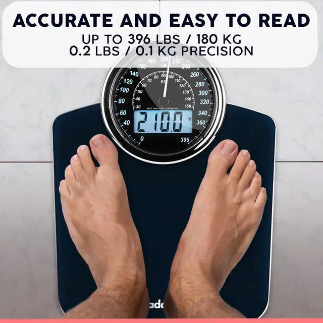 DUAL WEIGHT MEASUREMENT DISPLAY: Introducing the Adamson Hybrid Bathroom Scale the only choice of digital scales for body weight. Our innovative scale provides both digit and analog dial weight measurements, giving you the best of both worlds - digital accuracy with an analog scale experience.