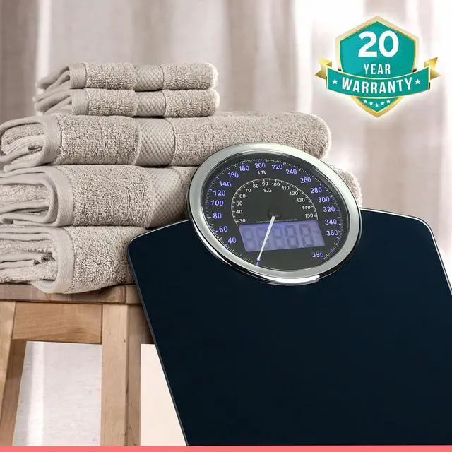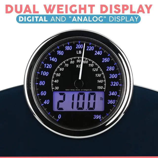 Hybrid 2-in-1 Analog & Digital Weighing Scale for Body Weight up to 400lbs - Thick Tempered Glass - Extra Large Display - Easy to Read Digital Bathroom Scale - New