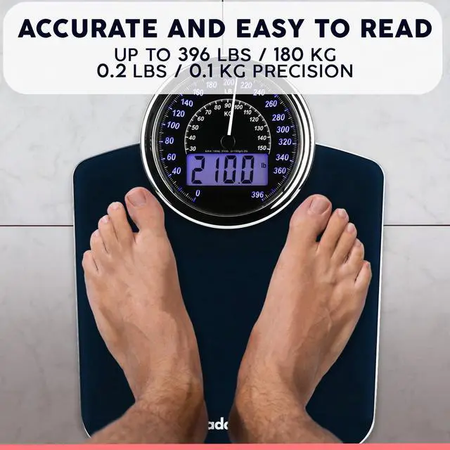 DUAL WEIGHT MEASUREMENT DISPLAY: Introducing the Adamson Hybrid Bathroom Scale the only choice of digital scales for body weight. Our innovative scale provides both digit and analog dial weight measurements, giving you the best of both worlds - digital accuracy with an analog scale experience.