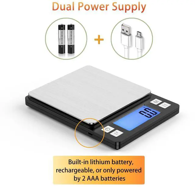 - Weight Capacity : 0.5g ~ 3kg / 0.02 oz ~ 6.6 lbs