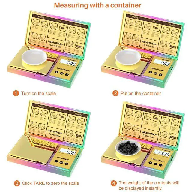 POWERFUL FUNCTION: LCD display can indicate the units, weight, low battery, overload and unstable. This digital scales screen with white backlight makes the digits is easy to read. Tare function can help you to get a net weight from anything within 200g. Energy saving by Auto-Off function in 3 minutes