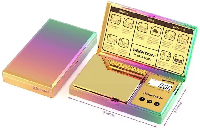 Shiny Digital Gram Scale 200g x 0.01, Chrome Rainbow Mini Scale for Food Ounces and Grams, Iridescent Plating Pocket Scale, Small Jewelry Scale, Travel Scale, Backlit LCD, 6 Units