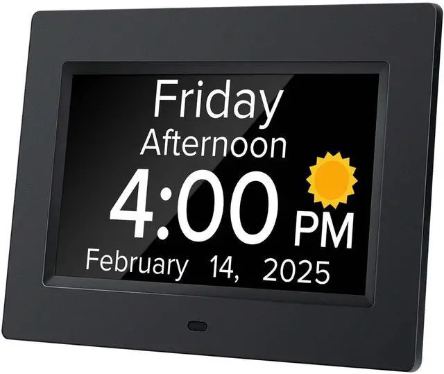 Automatic dimming option: Alzheimers clock display screen darkens at 7:00 pm every night (50cd/?) and brightens at 7:00 am during the day (250cd/?), suitable for visually impaired people. The light adjustment is soft and eye friendly.