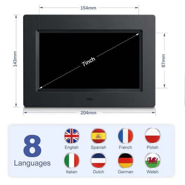 Large and clear numbers shine brightly on the display screen of our clock. This provides unparalleled contrast and clarity, and brings extraordinary visibility. English, French, German, Dutch, Polish, Spanish, Italian and Welsh 18 national languages, which help the elderly immigrants who cannot read other languages.