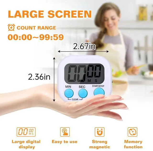 Portable and Lightweight - ABS plastic magnetic timer, Smart Memory Function auto-saves previous settings to save time. Compact size (70x60x20mm) with magnetic, hook, or stand options for clutter-free kitchens or classrooms .