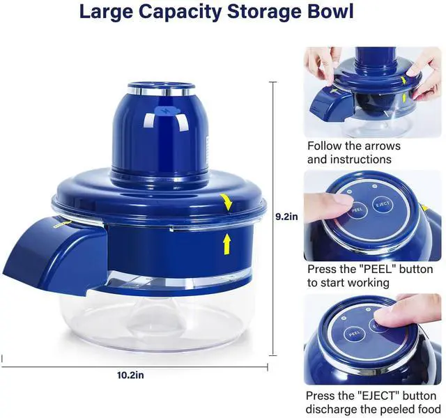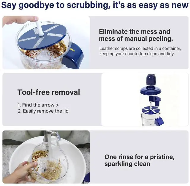 Food-Grade Safe, Easy to Clean: All food-contact parts are made of food-grade materials, safe and non-toxic. The peeling chamber and components are simple in design and can be easily disassembled. Simply rinse with water, leaving no blind spots for easy cleaning