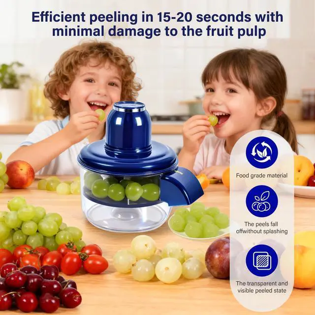 Multi-purpose Automatic Peeler: This fruit peeler machine can peel grapes, garlic, cherry tomatoes, blueberries, and more; It also doubles as a garlic peeler machine, It's a great tool for making baby purees, dessert fillings, salads, cocktail garnishes