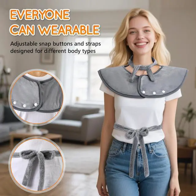 Adjustable shoulder straps, this heating pad fits perfectly and isn’t too heavy—the 24*37in size is suitable for most body types. Made from high-quality flannel material, it is soft and comfortable.