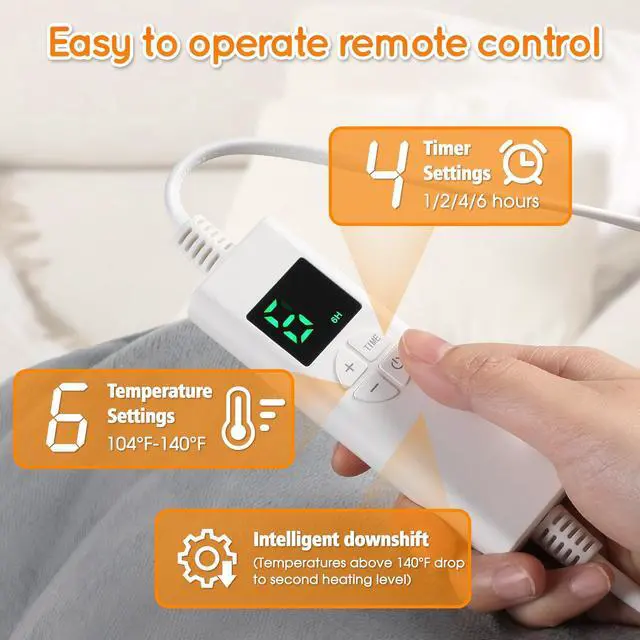 Equipped with 6 temperature levels, ranging from 104°F to 140°F (40°C - 60°C), it heats up quickly to meet different warming needs; it also offers 4 timer settings (1 hour / 2 hours / 4 hours / 6 hours).