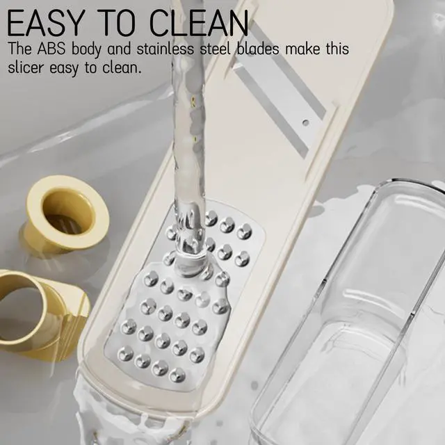 Easy to Clean: The ABS body and stainless steel blades make this slicer easy to clean. Simply rinse with water, and it's ready for the next use.