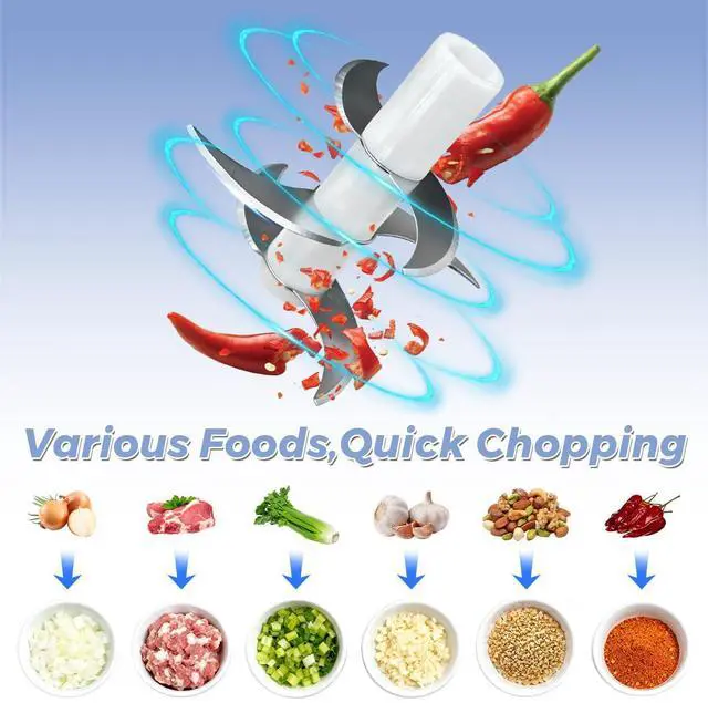 This battery garlic chopper and electric garlic chopper small easily handles green onions, ginger, chili, nuts, and other diverse ingredients, electric garlic chopper 6 stainless steel blades, electric garlic chopper 350 ml, food chopper portable, food processor mini. This versatility caters to a wide range of culinary tasks, from everyday cooking to specialty recipes, ensuring it adapts to your kitchen needs