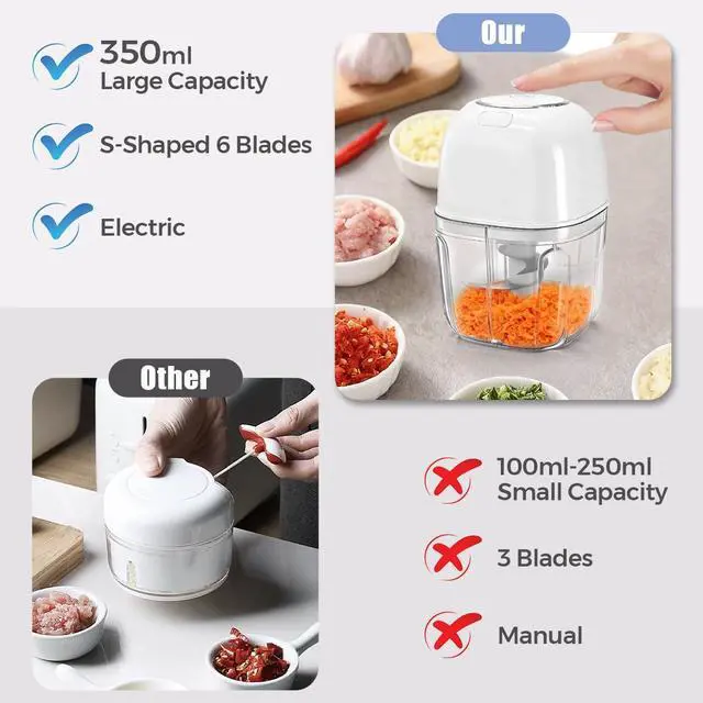 This electric nut choppers and electric mini chopper food processor features a 350ml capacity and a robust motor, enabling you to mince garlic swiftly and effortlessly, electric chopper for vegetables, garlic blender electric, mini portable veggie chopper, garlic processor. It significantly reduces your prep time, making it ideal for busy cooks who value efficiency in meal preparation