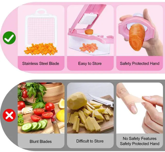 12--1 & Upgrade your cooking experience with the FALF 12-in-1 Vegetable & Onion Chopper with Container. This multifunctional vegetable chopper combines an onion chopper, mandoline slicer, food dicer, and grater in one compact design. Ideal for daily cooking, meal prep, and salad preparation, it helps simplify chopping, slicing, and dicing tasks in any kitchen. & Designed with interchangeable blades for slicing, dicing, julienne cutting, shredding, and grating. This manual food chopper easily handles onions, potatoes, carrots, cucumbers, cabbage, garlic, and more. Perfect for preparing salads, stir fry, salsa, and fresh vegetables. Equipped with durable stainless steel blades for uniform chopping and slicing performance. The sharp cutting design supports efficient vegetable preparation and smooth operation during everyday cooking tasks. - - The integrated food container collects chopped ingredients directly, helping keep your countertop clean and organized. Easily transfer vegetables from the container to pots, pans, or serving bowls without additional mess. , & - Features a non-slip base for stability and a hand guard for better control while slicing and dicing. This manual vegetable cutter offers a practical alternative to bulky kitchen appliances. & Made from sturdy food-grade ABS material for reliable everyday use. Removable blades allow thorough cleaning, and the compact design makes storage simple. A practical addition to your kitchen accessories and meal prep essentials.